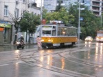 Sofia T6A2SF 2054 at the crossing of bul. A. Stamboliski with bul. A. Stamboliski. August 2016. The tram operates line 10, after a summer thunderstorm. Photo by M.Koblischka |