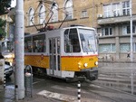 A tram "Tatra" T6A2SF on the streets in Sofia.