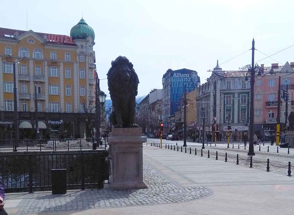 Sofia Ploshtad Lavov Most. August 2015. One of the lion statues giving the name to the bridge above the river Wladajska. Photo by M.Koblischka |