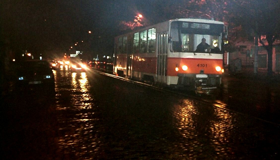 Sofia standard gauge T6B5B 4101 of line No20 at Kniaz Alexander Dondukov avnenue in Sofia center.