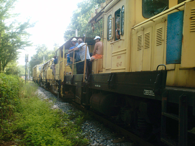 A work mashine between railway stop Proslav and central railway station Plovdiv.A noise was so strong, so while I took a photo,I should have to ear - muffs. :)