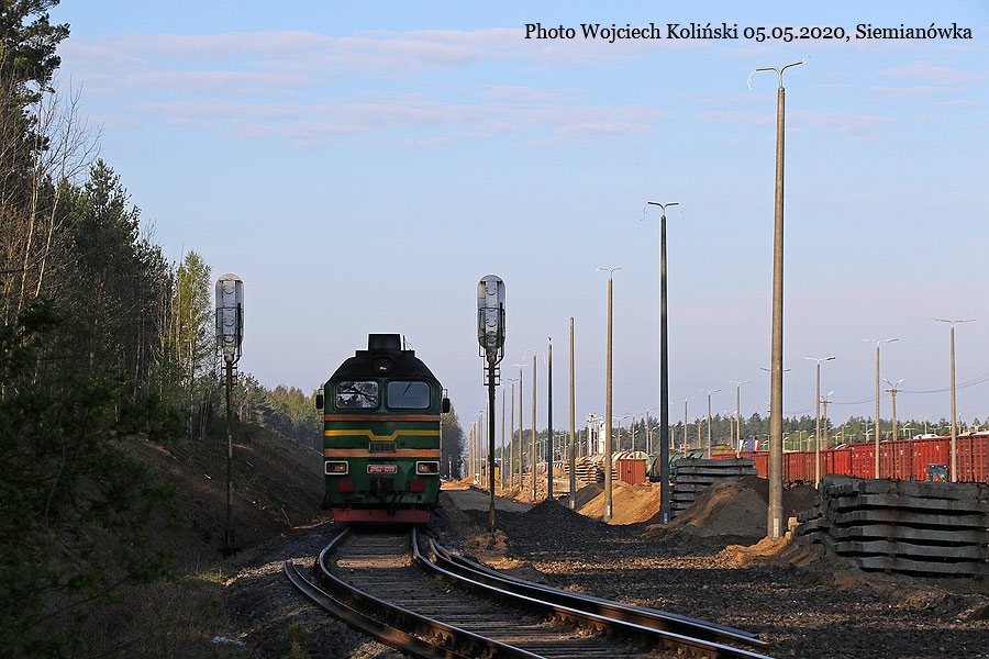 Bielaruskaja Czyhunka (BCz) 2M62-1095 with a freight train Swislocz (Belarus) - Siemianowka 04.05.2020, Siemianowka Photo W. Kolins |