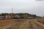 Belaruskaja Czygunka (BCz) M62-1312 with a freight train Siemianowka - Swislocz (Belarus) (and TEM2-030 on the right side) 05.11.2015, Siemianowka Photo W. Kolins |