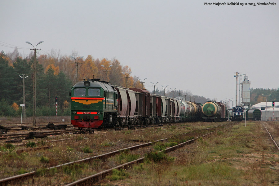 Belaruskaja Czygunka (BCz) M62-1312 with a freight train Siemianowka - Swislocz (Belarus) 05.11.2015, Siemianowka Photo W. Kolins |