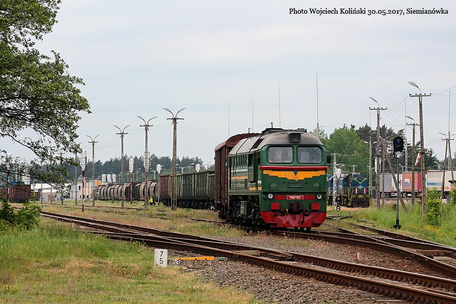 Belaruskaja Czygunka (BCz) M62-1312 with a freight train Siemianowka - Swislocz (Belarus) 30.05.2017, Siemianowka Photo W. Kolins |