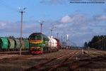 Belaruskaja Czygunka (BCz) M62-1320 with a freight train Swislocz (Belarus) - Siemianowka 09.02.2016, Siemianowka Photo W. Kolins |
