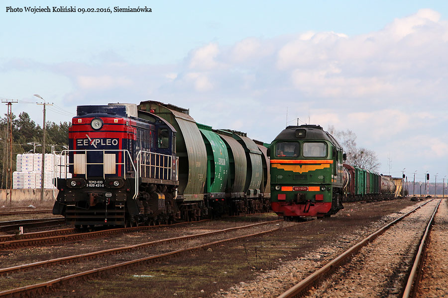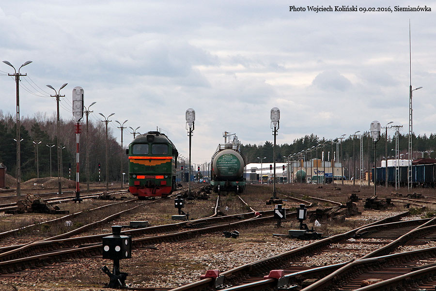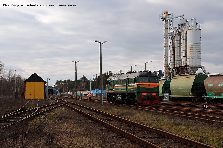 Belaruskaja Czygunka (BCz) M62-1320, maneuvers on the station and TEM2-030 is on the left side 09.02.2016, Siemianowka Photo W. Kolins |