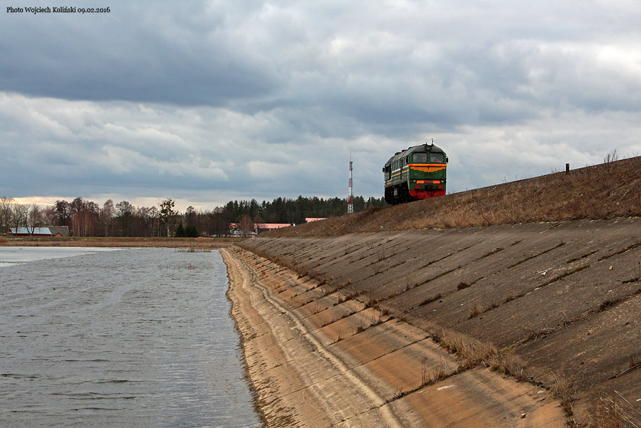 Belaruskaja Czygunka (BCz) M62-1320 with a freight train Swislocz (Belarus) - Siemianowka 09.02.2016, track Cisowka - Siemianowka Photo W. Kolins |