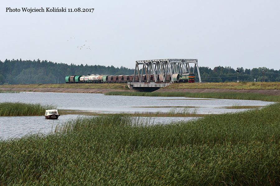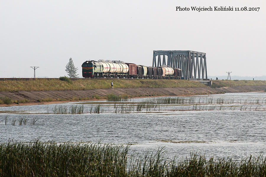 Belaruskaja Czygunka (BCz) M62-1320 with a freight train Swislocz (Belarus) - Siemianowka 11.08.2017, track Cisowka - Siemianowka Photo W. Kolins |