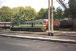 31 Aug. 1993, single M62 locomotive of BCZ (but designed for normal gauge) waiting for local passenger crossborder train Bialystok-Brest,
