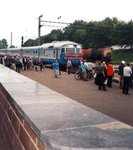 Belorussian dmu RVR DR1A-131 arrives Grodno station at 3 o'clock in 9.08.2001. This class of dmu performs operations in Grodno and Lida regions where the route is not electrified. In the southern, central and eastern parts of belorussia the local service perfomormed by usual ER-2 emu's.