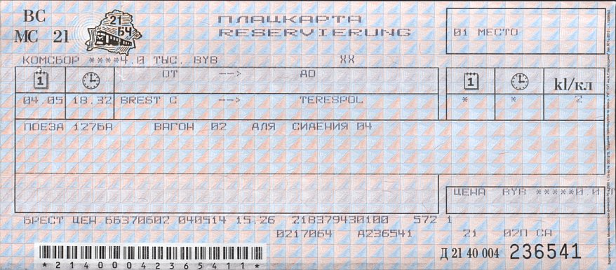 BC ticket Vitebsk-Brest 3.5.2014 |