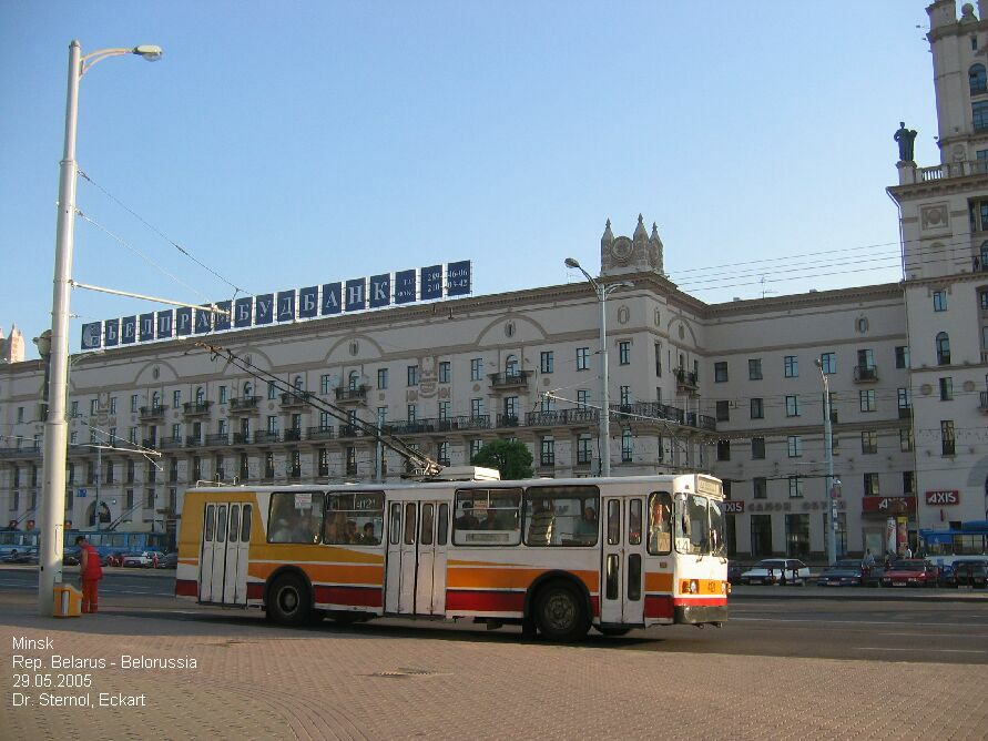 | IMG 6199 Minsk 29.05.05 O-Bus 4121, Linie 44, gegenüber dem Hauptbahnhof (Passashirskij) Dr. Sternol, Eckart (Foto), Eckart.Sternol@bahn.de |