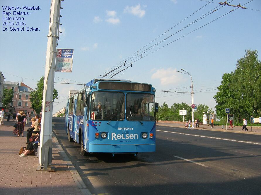 | IMG 6274 Witebsk O 29.05.05 O-Bus 057 an der Hst. Rathaus, da hält Linie 4 auch planmäßig. Dr. Sternol, Eckart (Foto), Eckart.Sternol@bahn.de |