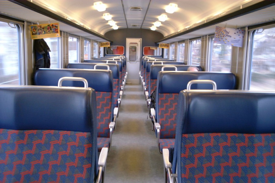 Interior of a modernized second class EW II of the SBB CFF FFS in the