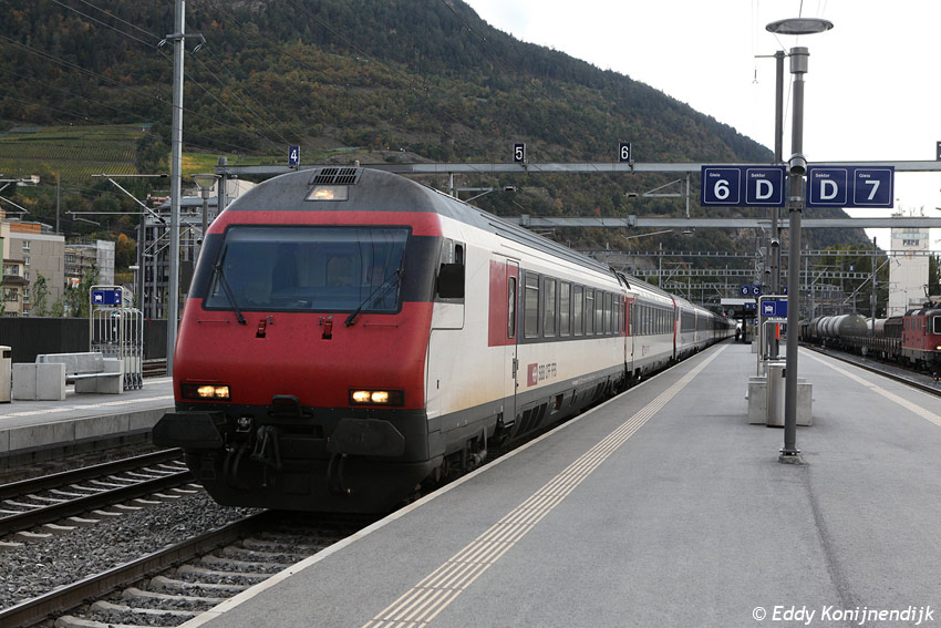 IC 1077 (Basel SBB-Brig) + SBB 460 019 Visp, 05-10-2010. © Eddy Konijnendijk. |