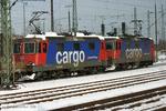 Re 4/4 421 384 und 11338 shunting in Buerglen (Thurgau) (04.02.2004).