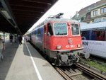 SBB - Switzerland Because of the different train protection systems, the trains Zürich-Lindau(-München) are operated by SBB-Cargo class Re 421 locomotives, that have been adapted to run in Germany. In Lindau two DB diesels of class 218 take over. Lindau, 06-08-2011 Digital photo by Marco van Uden |