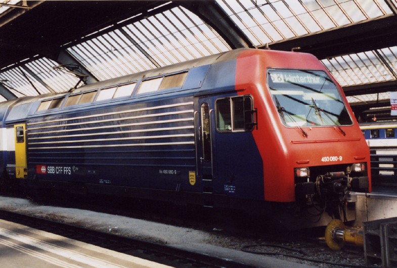 A class 450-060 is seen at the buffer stops at Zurich HB in April 2002.