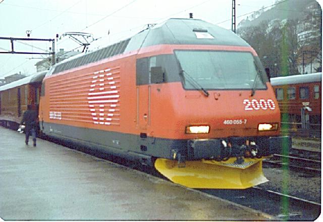 SBB locomotive 460 055-7, at Bergen station on a rainy winterday in 1995.
