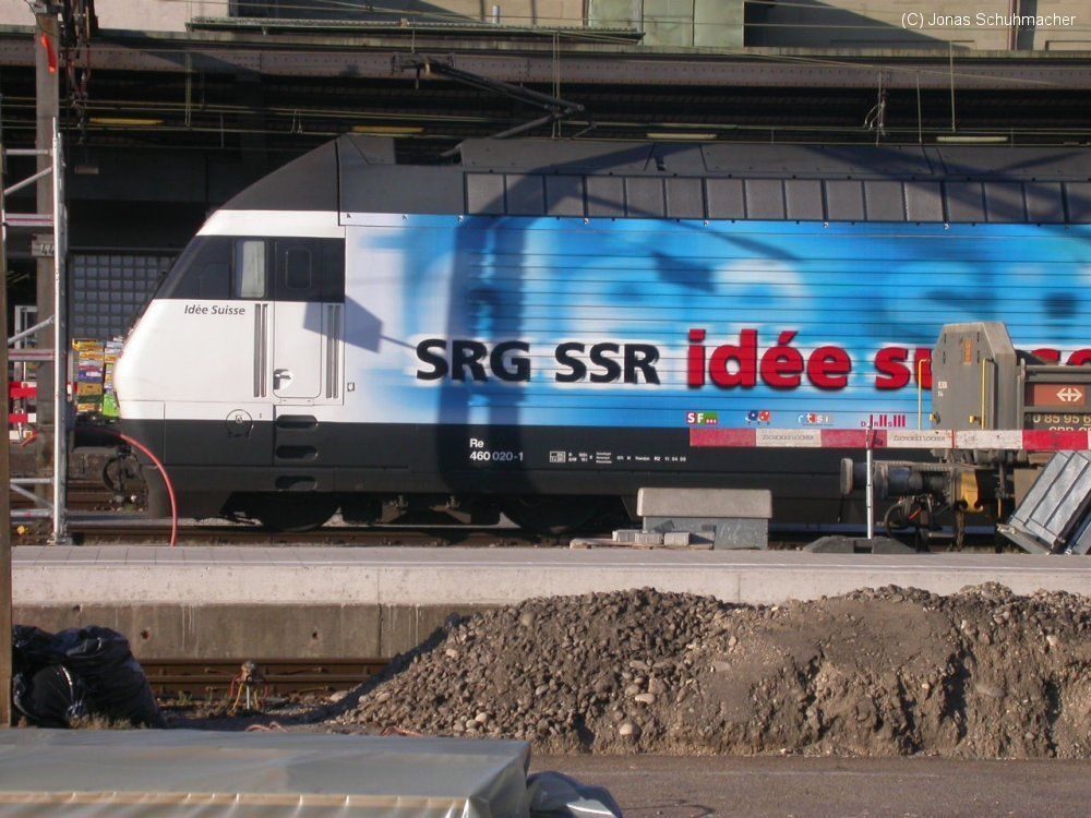 (2004.02.20) SBB Re 460 in the advertising livery for SRG SSR Idee Suisse is about to leave