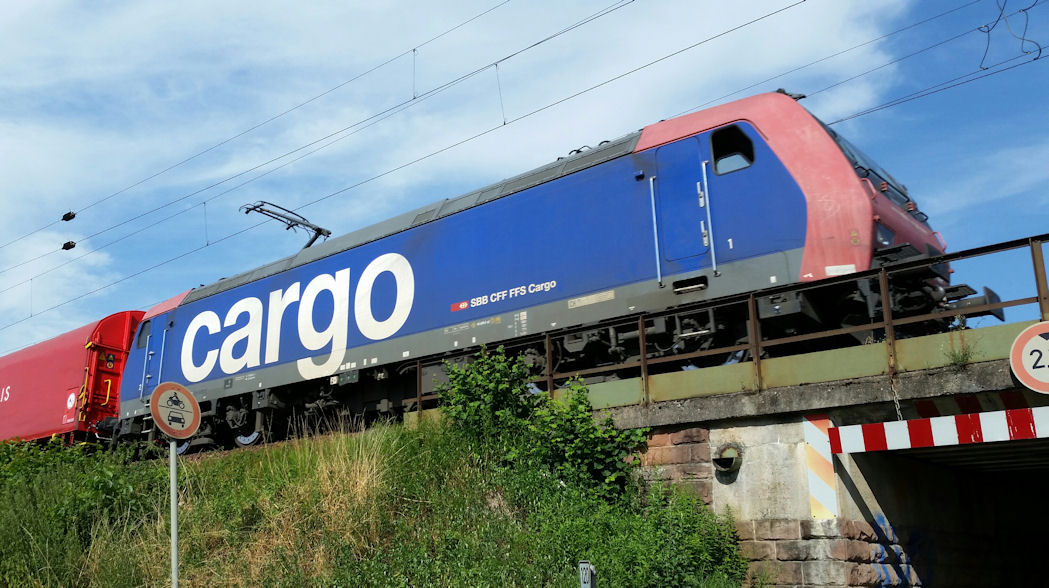 SBB electric locomotive class Re482, Mannheim-Friedrichsfeld Unknown SBB Re482 passing a bridge south of Mannheim-Friedrichsfeld on the way towards Schwetzingen. Unfortunately, a road sign covered the number by which the true identity of the locomotive remains hidden. The locomotive is equipped with four pantographs for use both in Switzerland and in Germany. Photo taken Friday 24 July 2015. Photo: Steffen Mokosch (Steffen.Mokosch@web.de) |