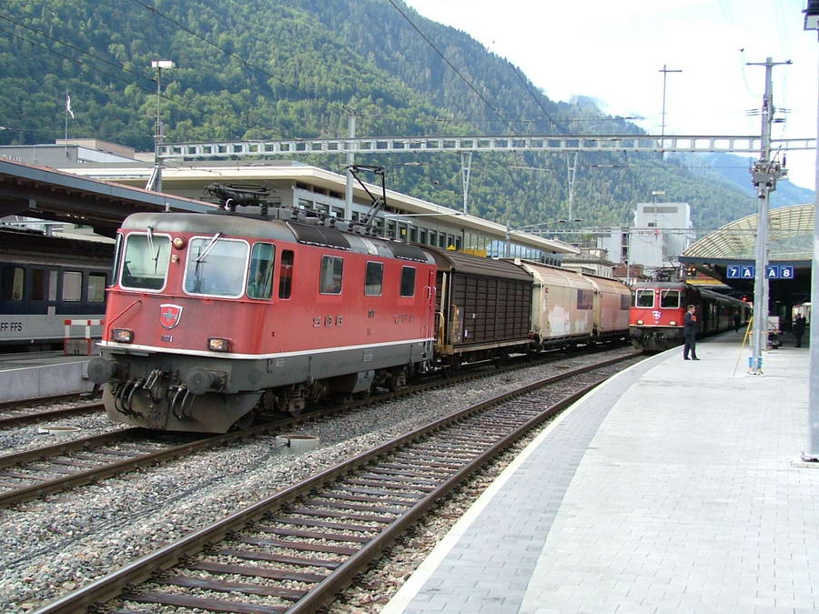 SBB Re 4/4 II 11178 and Re 6/6 with freight train, Erstfeld, 19th August 2003;