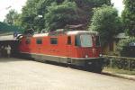 SBB Re 4/4II 11193 in front of Rx 2813 (St. Gallen-Chur) in Rheineck, 7-8-2002.