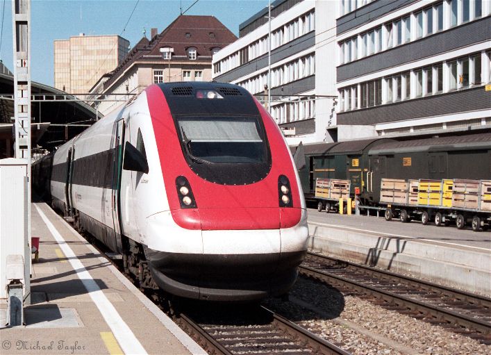 SBB RABDe500 Electric Multiple Unit. Second class driving motor 500 100 leads the original set 500 00-3 away from St Gallen Hauptbahnhof with train IR534 to Geneva Airport on Monday May 16th, 2003.