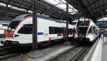 SBB - Switzerland The first FLIRT class for SBB was especially built for the narrow profile Seetal line Luzern-Lenzburg. RABe520 003 plus an unidentified second are seen in Lenzburg on the tracks in front of the station. There are plans to connect the Seetal line to the "normal" tracks of the Lenzburg station such that this "station" can be abandoned. Lenzburg, 18-11-2005