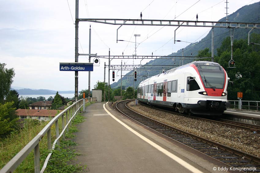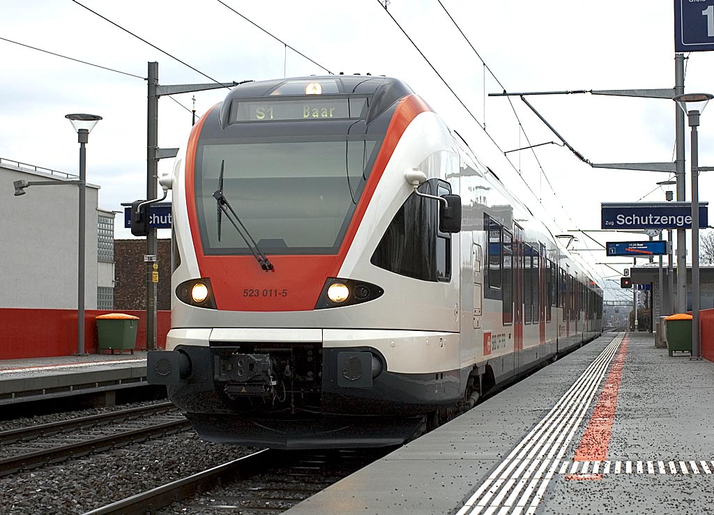SBB - Switzerland The FLIRT trainsets of class RABe523 are especially intended for the S-Bahn of Zug. RABe523 002 is ready to depart with a train from Zug to Ertsfeld on the Gotthard line. Zug, 17-11-2005
