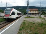 SBB - Switzerland The Flirt trainsets from Stadler are becoming a very familiar sight in Switzerland. Trainset RABe 523 014 arrives in Cossonay on its way to Lausanne and beyond to Villeneuve. Cossonay, 03-08-2011 Digital photo by Marco van Uden |