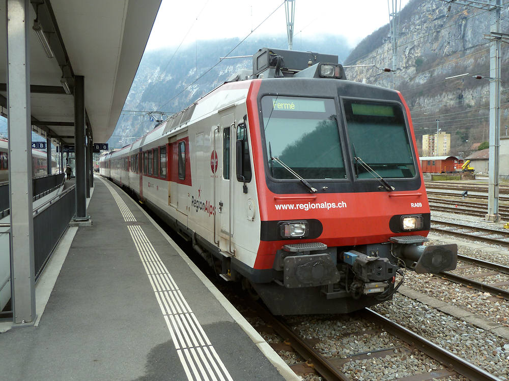 SBB - Switzerland A RegionAlps trainset with motor car RBDe 560 402 leading (RA02) arrives at Sierre. RegionAlps is a cooperation between SBB and TMR for local trains in the Rhone valley. Sierre, 30-12-2022 Photo by Marco van Uden |