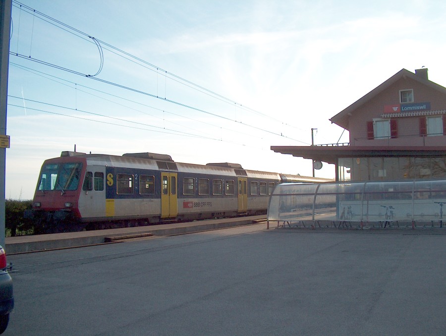 An unusual sight: SBB NPZ arrived from Olten in Lommiswil (a small station providing not a lot of passengers), 25 March 2005, heading back to Olten. Since the introduction of the new timetable in December 2004, some of the trains Olten - Solothurn continue on the RM line (Solothurn - Moutier) to Solothurn-West - Langendorf, and some of them even to Lommiswil, one station farther.