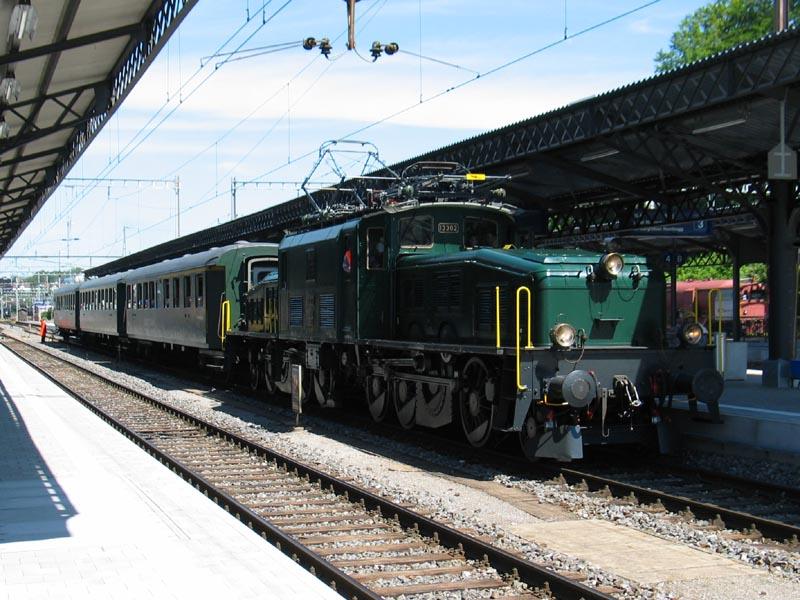 MECE/SBB-Historic Be 6/8 III 13302 mit Extrazug in Altstätten SG am 26.6.2004.