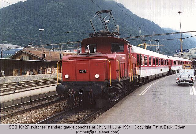SBB 16427 switches standard gauge coaches at Chur on 11 June 1994.