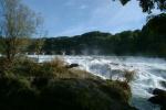 13 October 2002, Schaffhausen, Schweiz Brücke knapp oberhalb des Rheinfalls der Linie Schaffhausen-Winterthur. Im Hintergrund ist Schloss Laufen zu sehen.