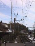 Kollbrunn, crossing Töbeliweg (rope driven). General view of the open barrier. In the background: The turnout on the "Winterthur" side. 1 march 2003, digital photo by Felix Geering (f_geering@yahoo.de) |