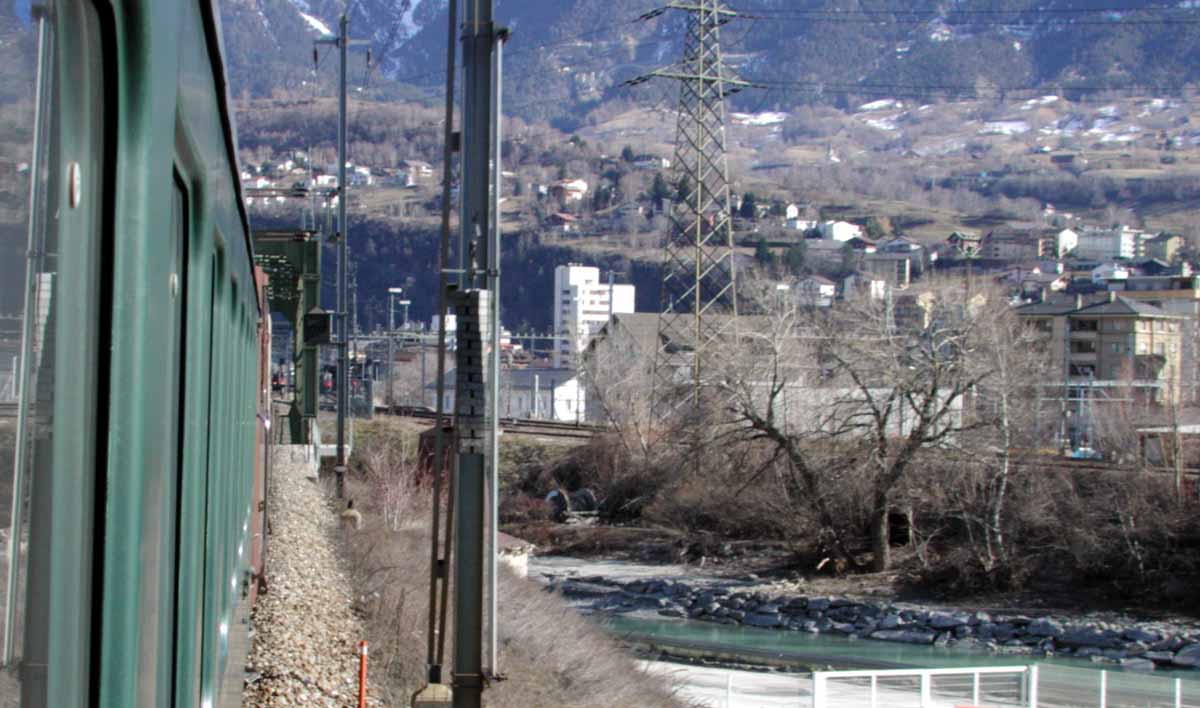 Blick vom Bahnhof Brig in Richtung Simplon. Feb. 2000 Photo: A. Senn; http://www.senn.ch |