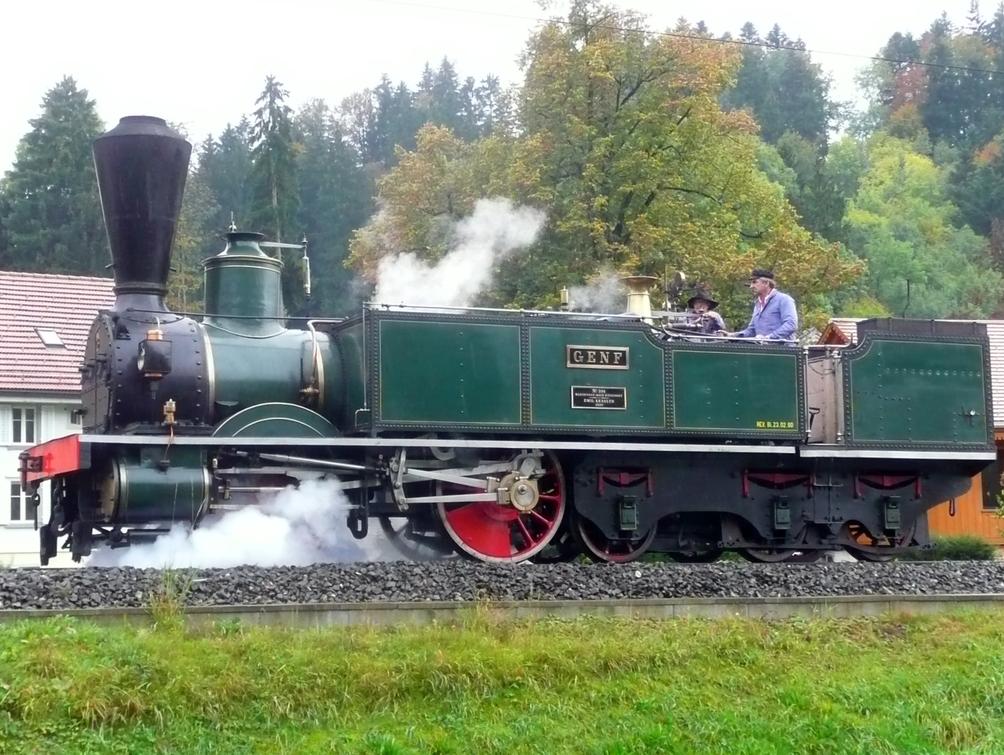 Steam locomotive GENF (No. 28), 151 years old, going slow as it