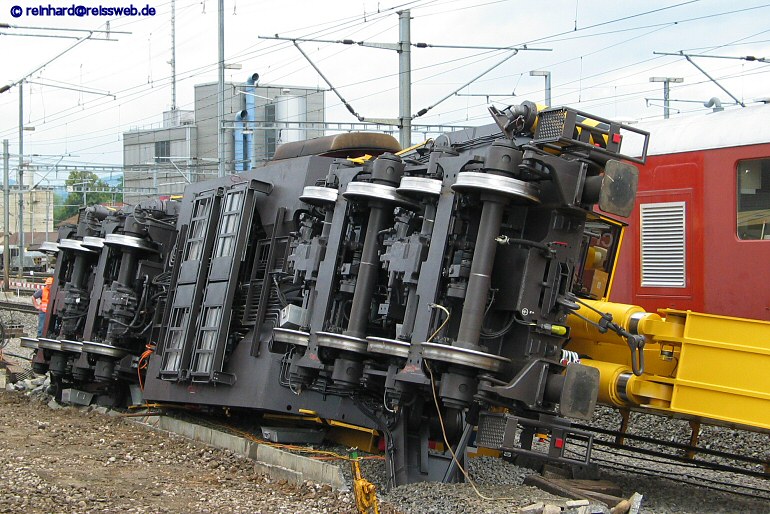 This 8-axle railway crane tumbled in Aaurau Station while moving a 38-to-load (28.06.2004)