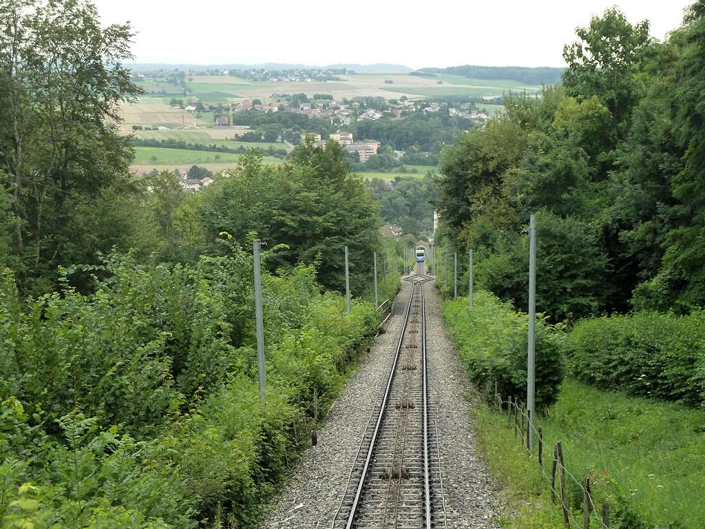 MBC - Switzerland The funicular in Cossonay (operated by MBC) runs from the SBB station towards the village on top of the hill. The incline is quite shallow. Cossonay, 03-08-2011 Digital photo by Marco van Uden |
