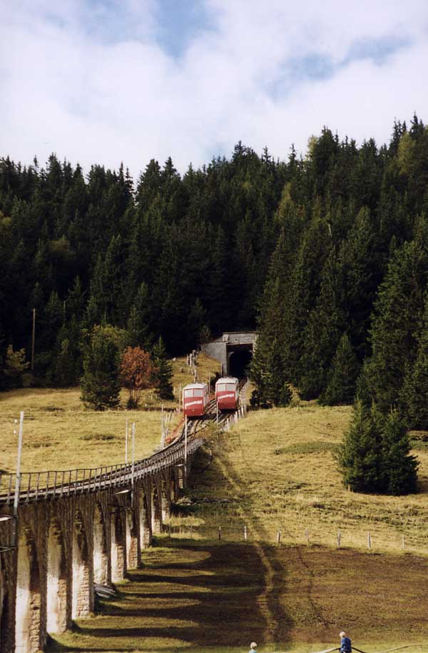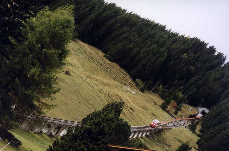 Standseilbahn Mürren - Allmendhubel. Ein spezieller fotografischer Blick auf die Strecke. Okt.98