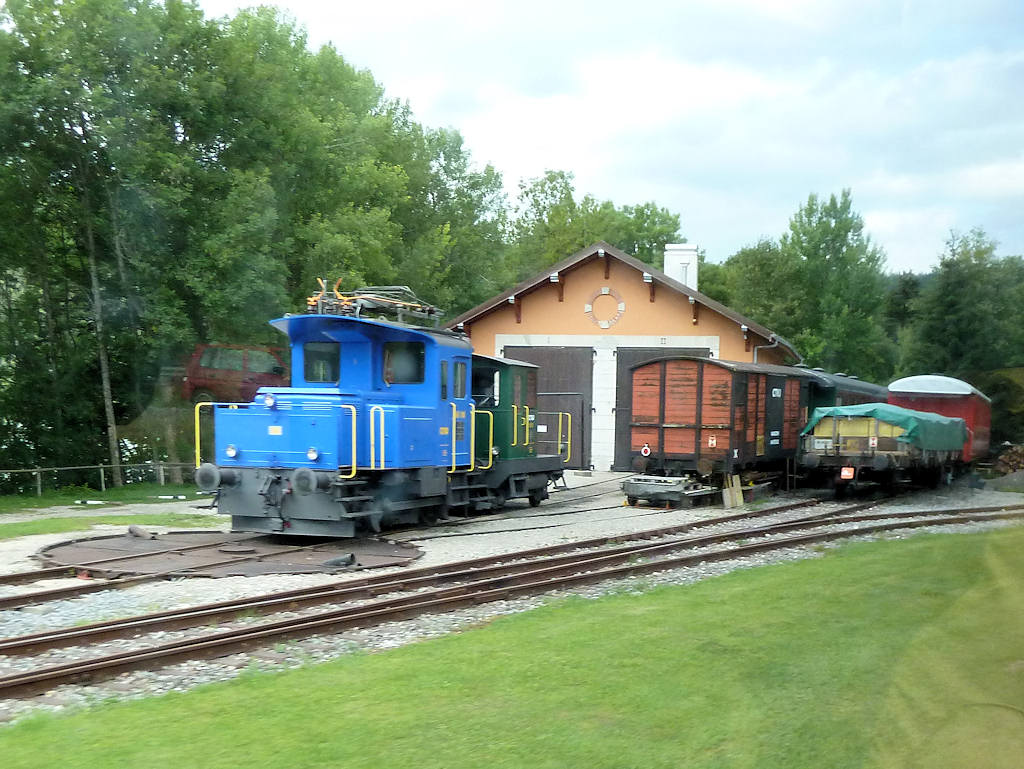CTVJ - Switzerland Museum Railway Compagnie du Trains à Vapeur de la Vallée du Joux operates historic trains between Le Pont and Le Sentier. Electric/diesel locomotive Tem II 288 and some other stock are seen next to the shed in Le Pont. Le Pont, 03-08-2011 Digital photo by Marco van Uden |