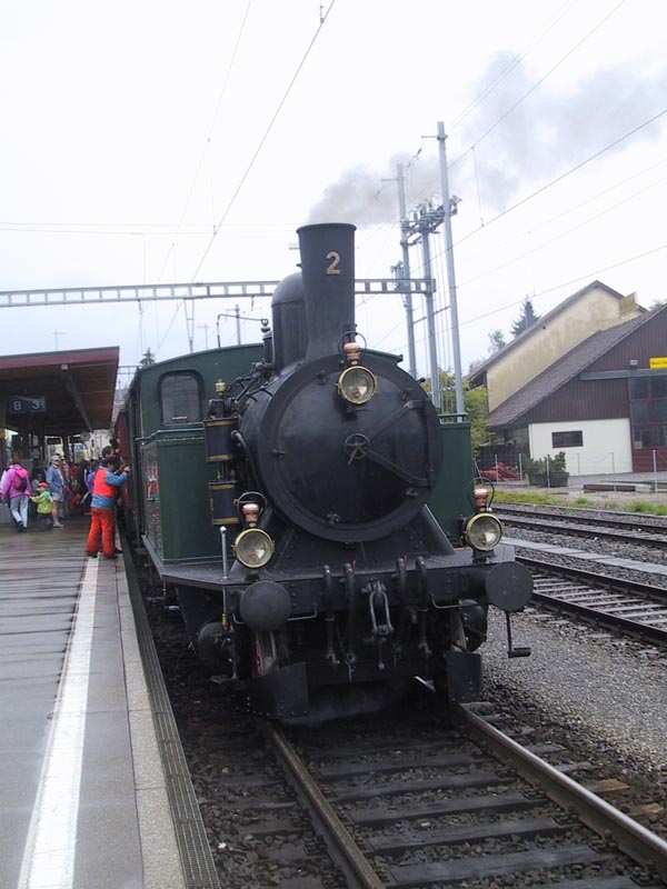 DVZO-Lok Ed 3/4 2 bei einer Sonderfahrt in Hinwil am 27.4.2002. (Photo by Pascal Zingg paszingg@bluewin.ch) |
