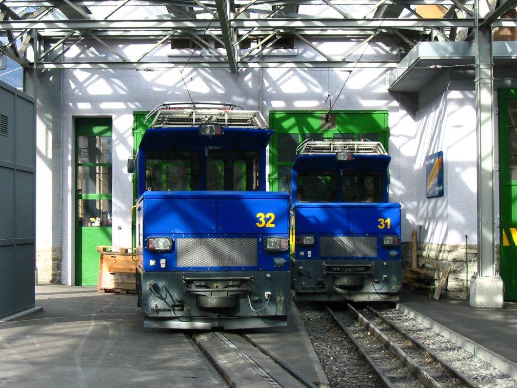 Trip to Switzerland November 2003. The powerful WAB engines 31 and 32 as seen in Lauterbrunnen. Photo by Stephan R. Schilling. |