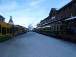 En attente de départ pour Lauterbrunen, 3 rames du Wengernalpbahn, le 23/08/2007.