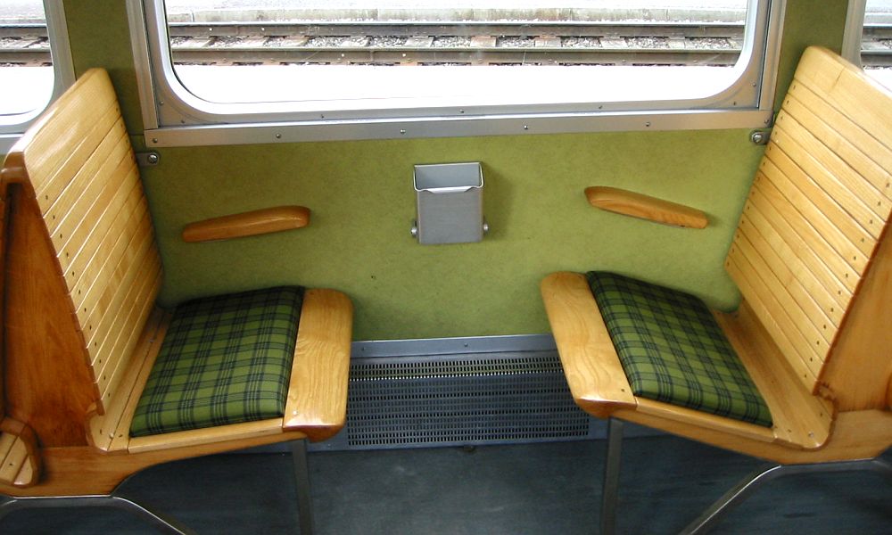 Two seats in a refurbished BDhe 4/4 power car of the Wengernalpbahn seen on 21