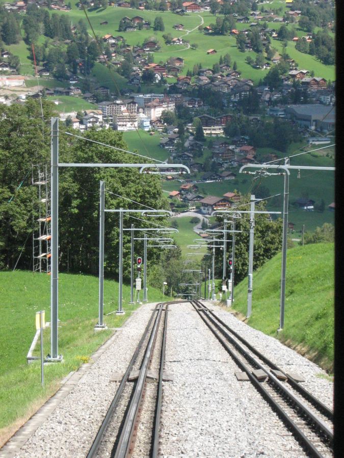Segment Brandegg ---> Grindelwald Grund, seen from the vicinity of the central station of Grindelwald. Pic looking West (Kleine Scheidegg). R 448 (Kleine Scheidegg ---> Grindelwald). 23rd August 2007.