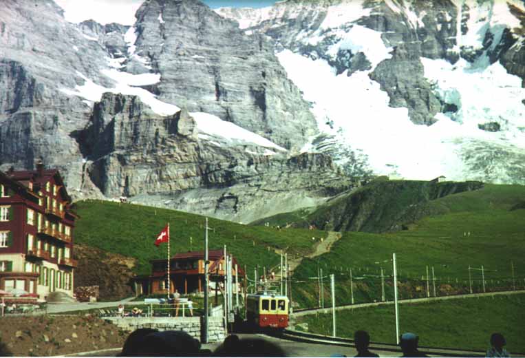View from Kleine Scheidegg. Historical EMU leaving for Grindelwald.